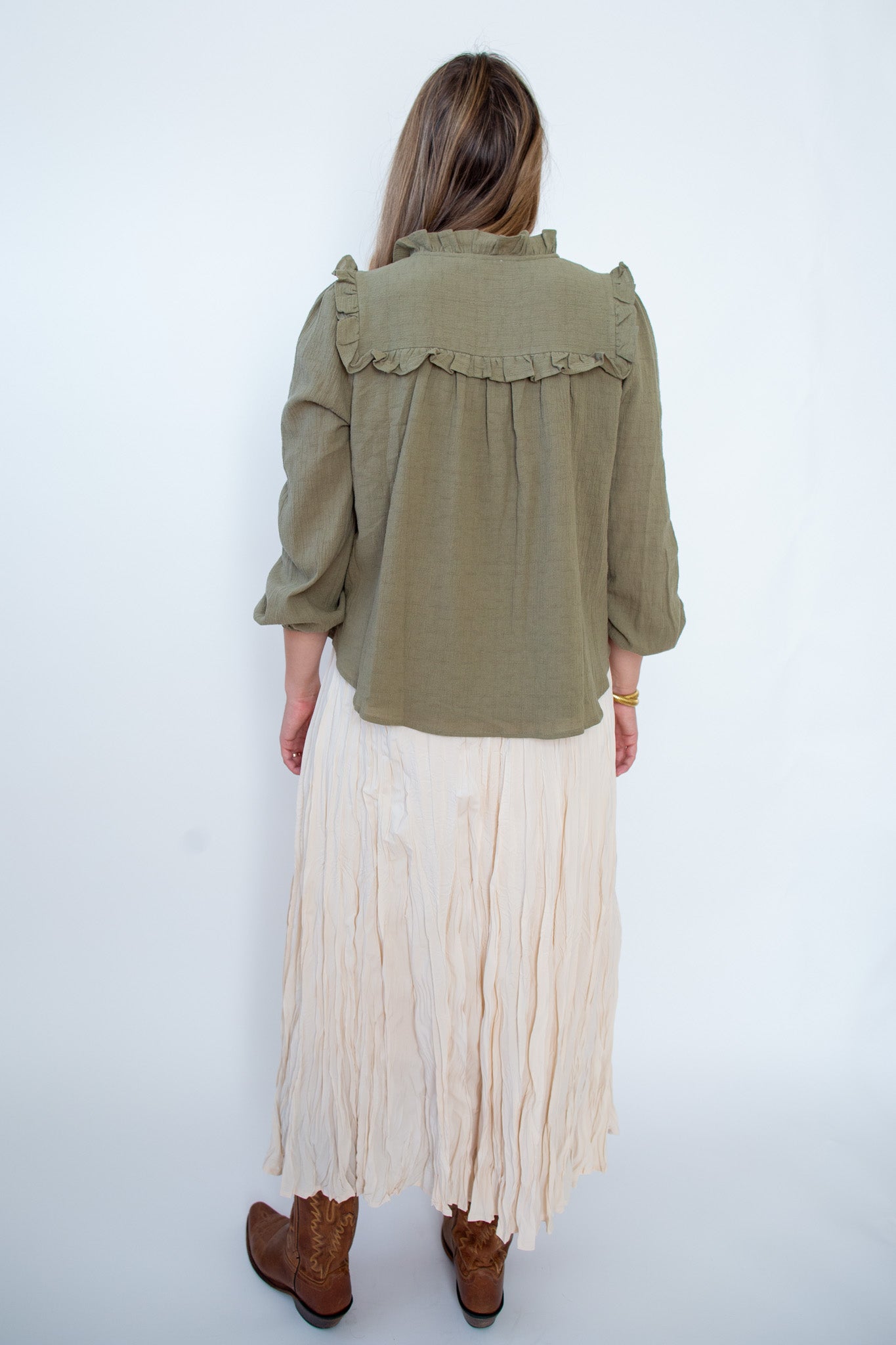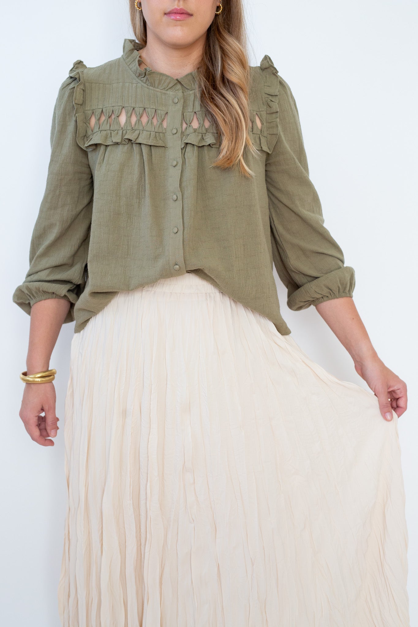 Crinkled Maxi Skirt - Cream