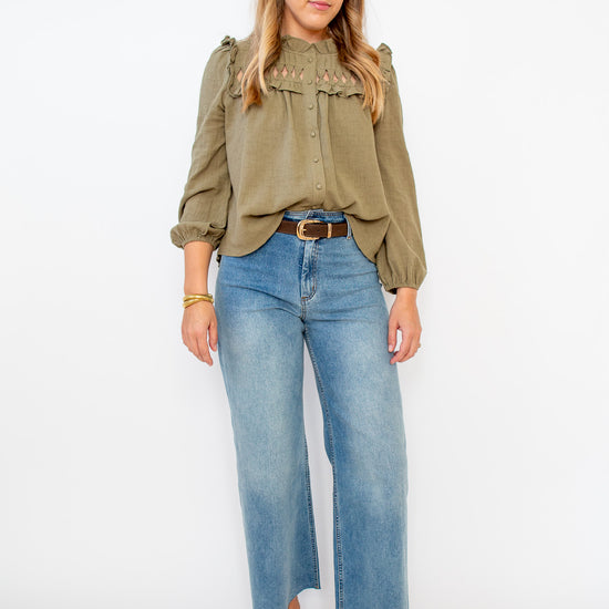 If between sizes, size up. Elle is 5'10", size 30 in pants, wearing a size L, her larger size.