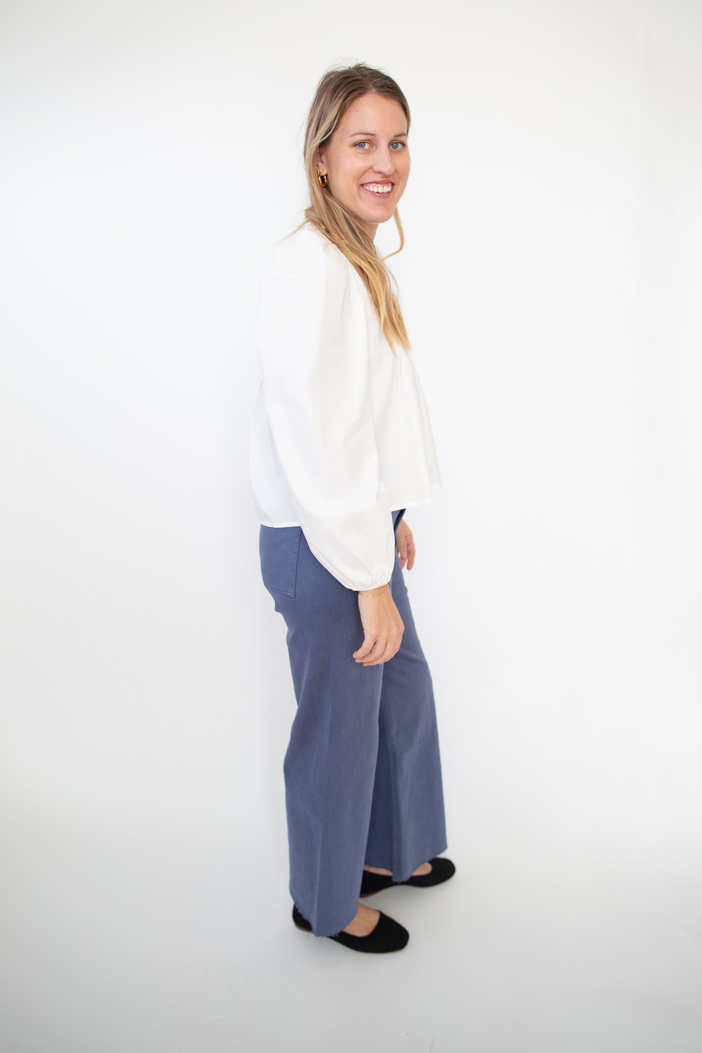 Maggie Wide Leg Denim Pants - Dusty Blue