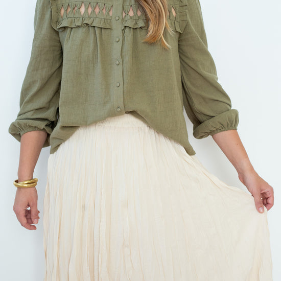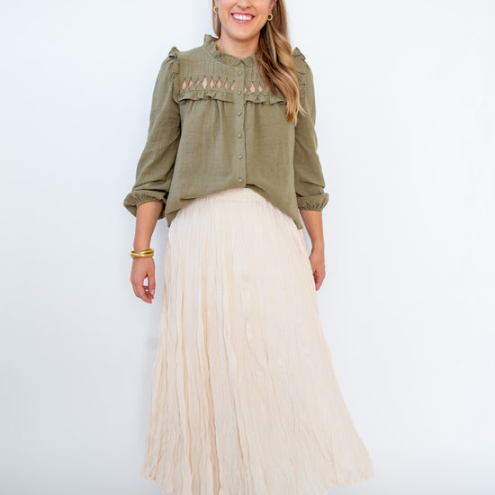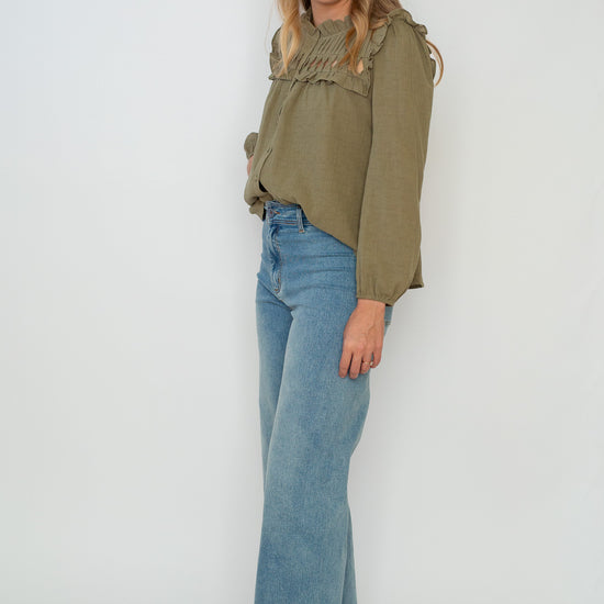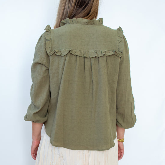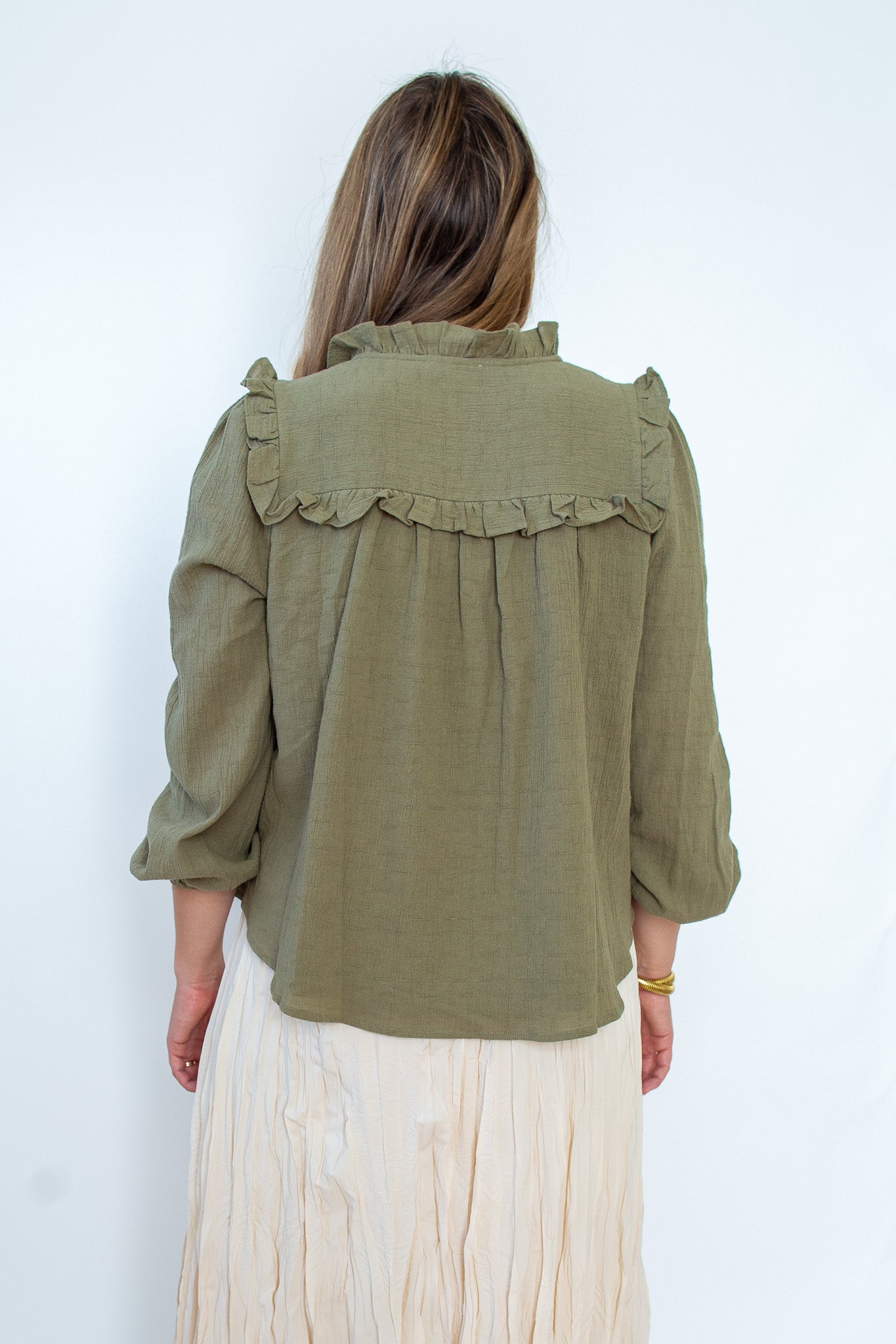 Discover the sophisticated charm of this elegant blouse designed to elevate your wardrobe. Crafted with meticulous attention to detail, this ruffled blouse blends effortless style with essential versatility, making it ideal for both professional and casual settings.