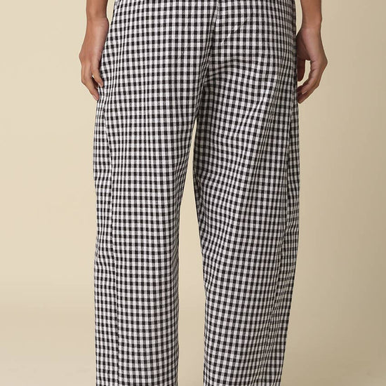 Our Scarlett Gingham Pants feature a relaxed, baggy silhouette with a loose fit through the leg and an elastic waistband with side pockets for an easy pull-on style.